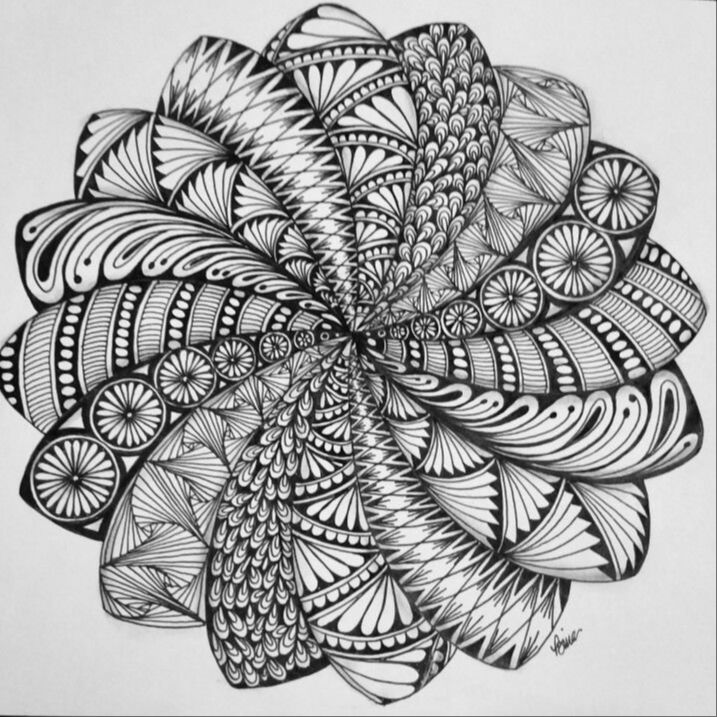 Zentangle is a meditative art practice created by Rick Roberts and Maria Thomas, involving drawing structured patterns with repetitive lines, marks, circles, and shapes to create abstract art, promoting focus, mindfulness, and creative expression.